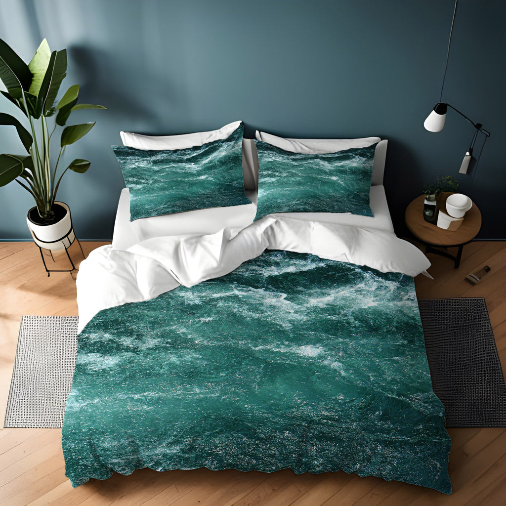 Nautical Green and Blue Ocean Waves Duvet Cover | Green and Blue